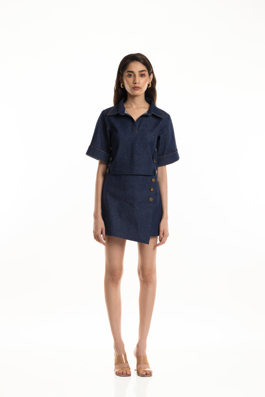 Urvi Rawal in Denim Box Top & Flap Skirt Set