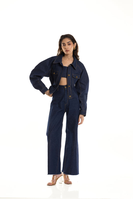 Mariyam Gaffar in Nu Denim Jacket, Bustier and Jeans Set